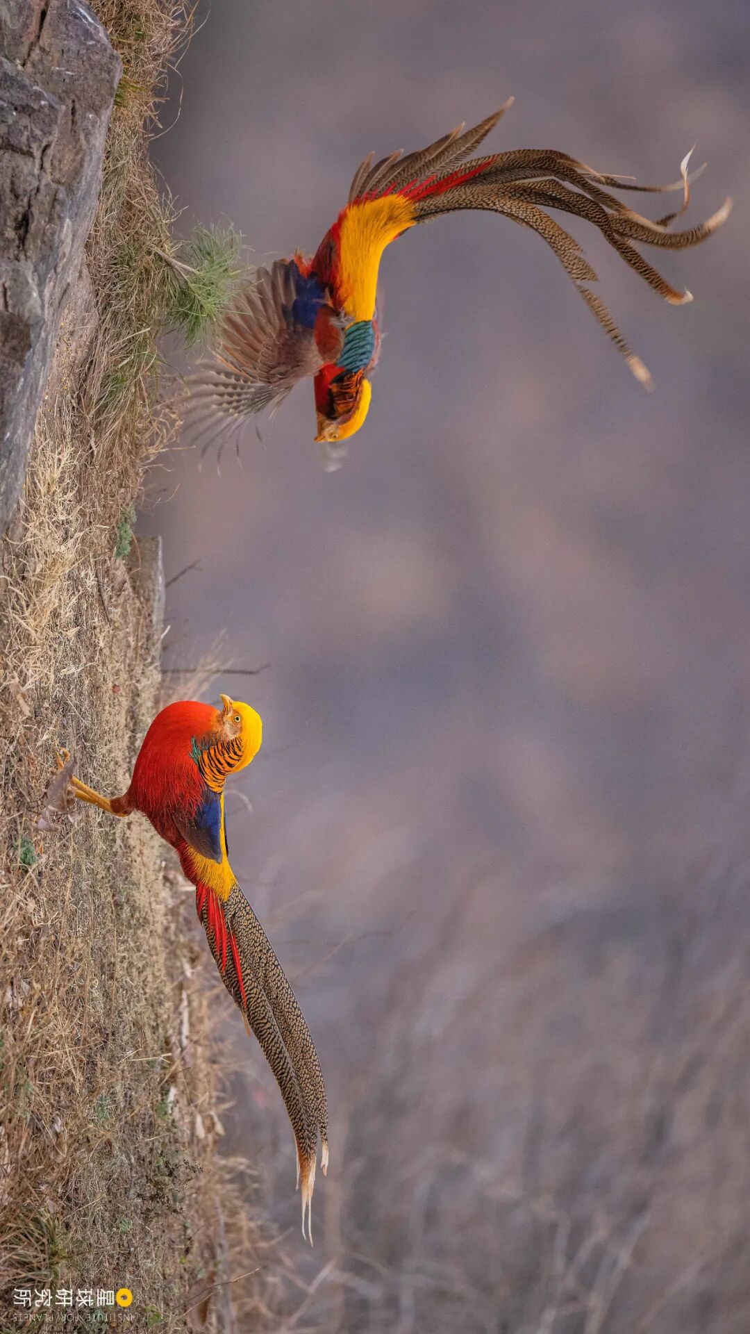 (请横屏观看,学者推测红腹锦鸡可能起源于秦岭以南,而白腹锦鸡起源于横断山脉,两者于170万年前分化,摄影师@陶洪)