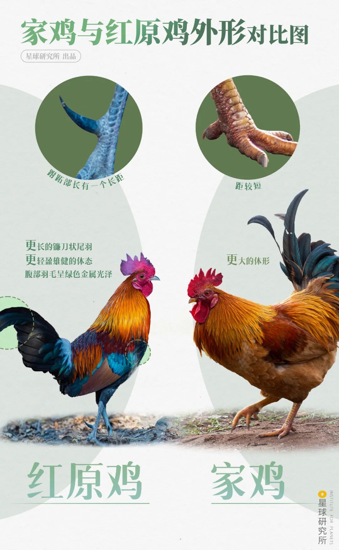 红原鸡的体态更雄健、羽毛更华丽