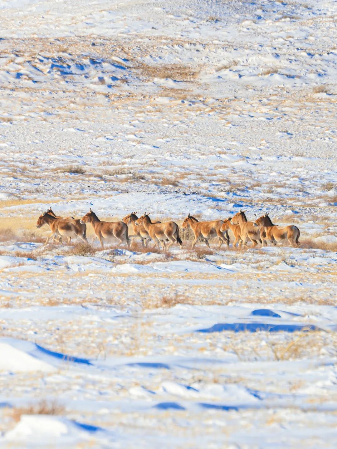 藏野驴迁徙时喜欢排成一路纵队、鱼贯而行