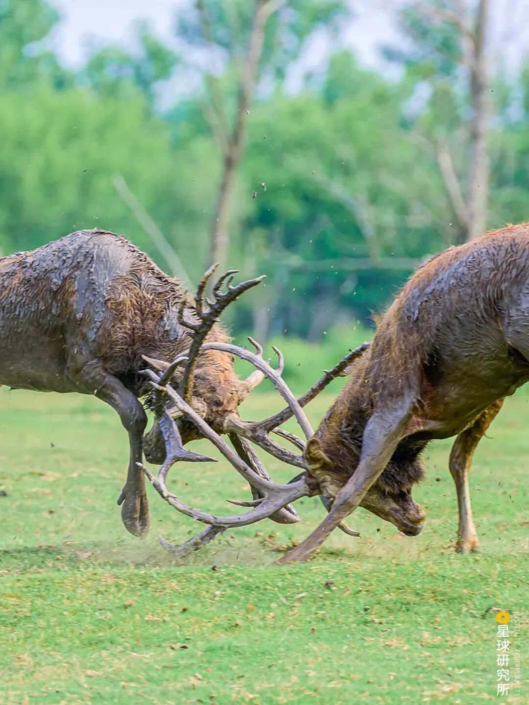 (麋鹿在绿浪中迁徙,目前最主流的说法认为,有蹄类动物迁徙的目的是生存与繁衍,它们游走于草原之间,穿越山川河流,跋涉千里,摄影师@孙华金)