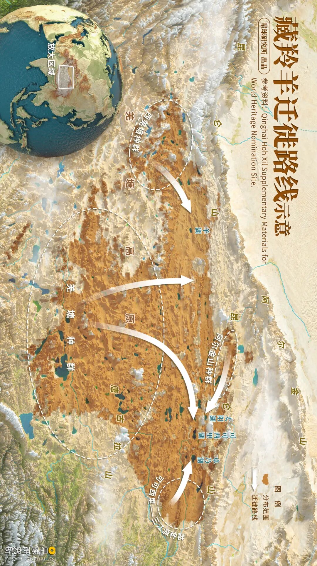 (请横屏观看,迁徙的藏羚主要是雌性,每年五、六月份,母羊会迁徙前往产羔地产仔,然后母羚又率幼仔原路返回,完成一次长达300公里的旅程;藏羚中也有部分种群不迁徙,它们主要分布在羌塘南部地区,制图@陈景逸/星球研究所)