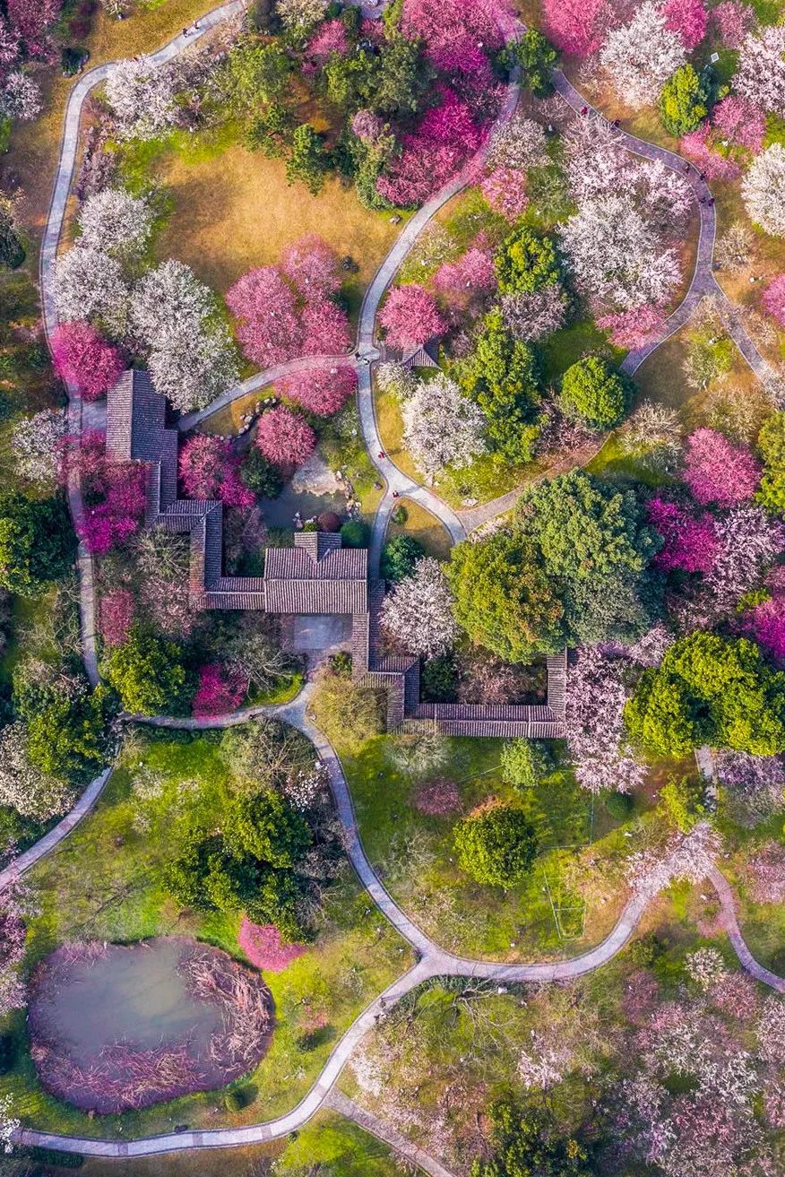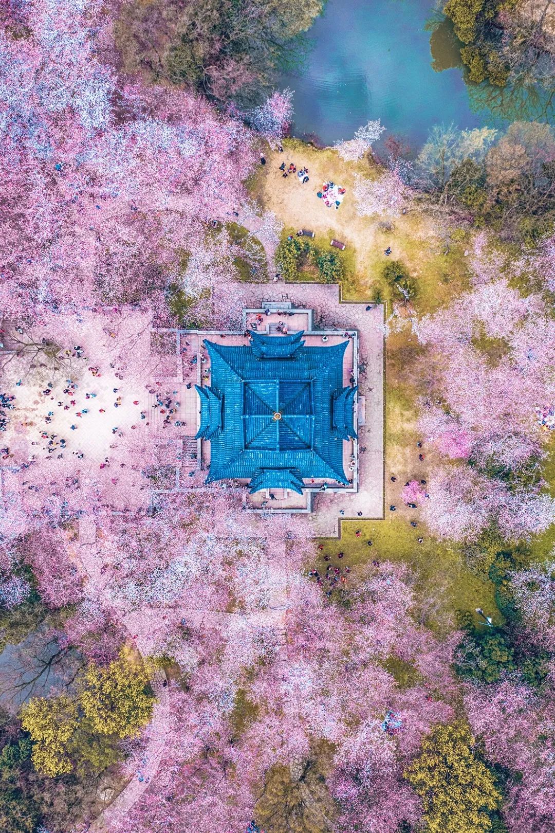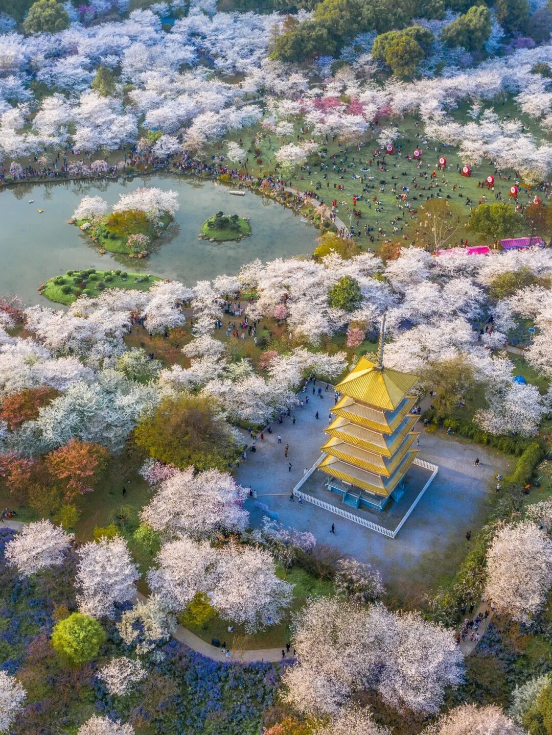 (繁花丛中一点人,江苏无锡鼋yuán头渚樱花,拍摄于2019年3月,摄影师@廖昊)