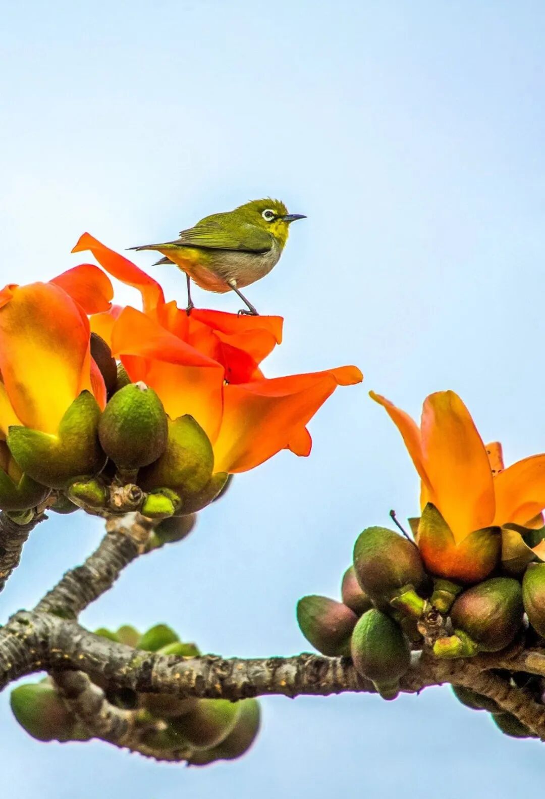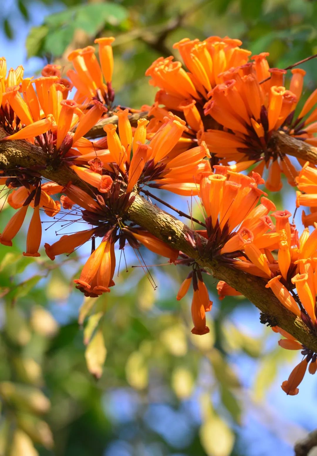 (火烧花,分布于云南南部、两广等地的常绿乔木,拥有橙黄色至金黄色的筒状花冠,如同火焰烧灼,摄影师@杨云/中国科学院西双版纳热带植物园)