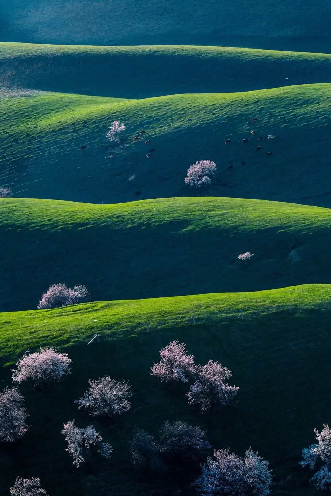 (请横屏观看,伊犁谷地喀拉峻草原的花海,人称五花草原,摄影师@万瑞)