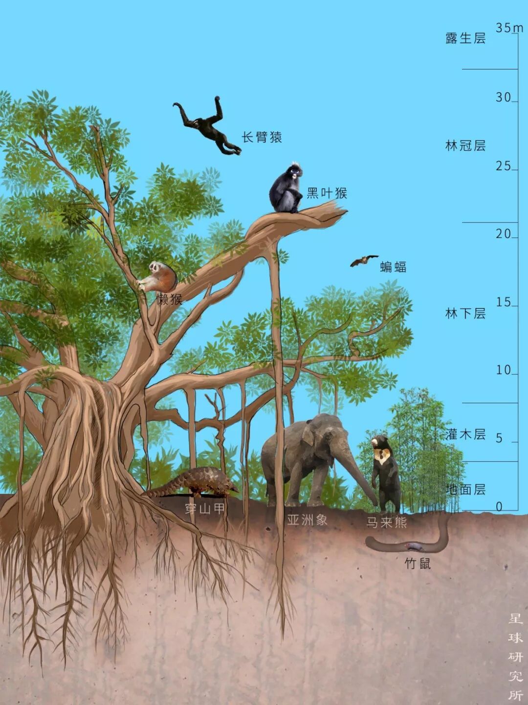 (森林生态系统,仅作示意,非实际场景,制图@张靖/星球研究所)