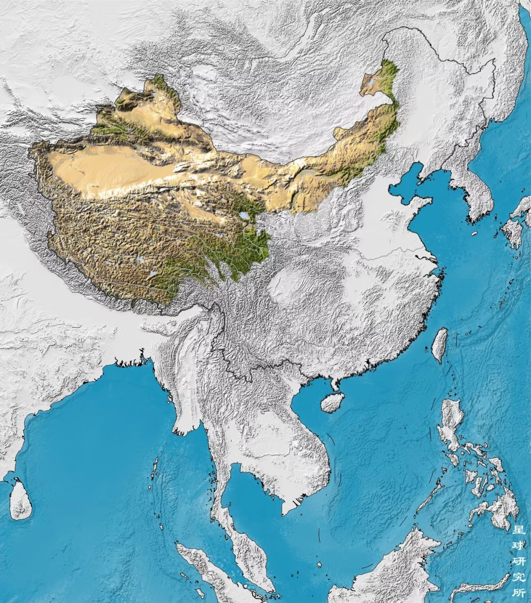 (现今的中国地形,图片源自@123RF,修正@张靖&王朝阳/星球研究所)