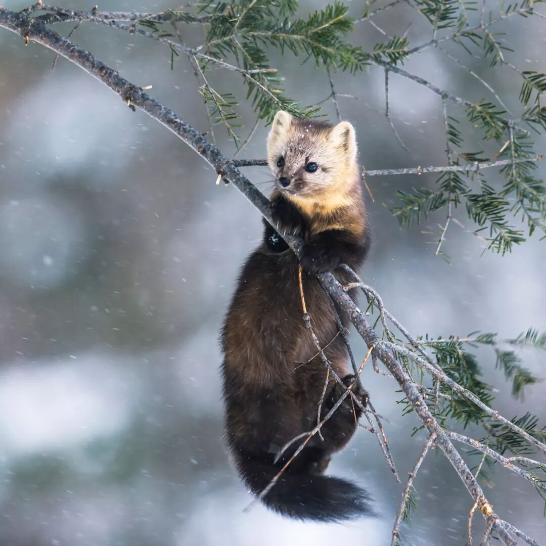 (貂皮大衣的“原料”之一,因过度捕杀数量大为减少,现为国家一级保护动物;下图拍摄于长白山,摄影师@王峥)