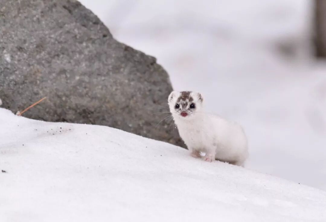 (冬季的伶鼬,拍摄于长白山自然保护区,摄影师@武耀祥)