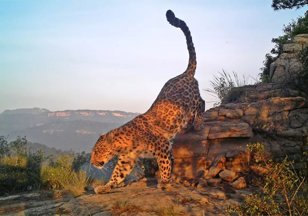 (华北豹,红外触发拍摄,图片源自@猫盟CFCA&北京师范大学)