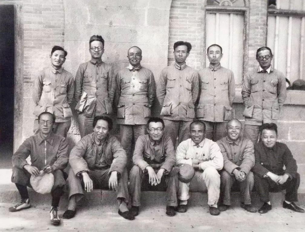 (史上最牛创业团队;下图拍摄于1938年,为六届六中全会主席团合影,前排左起:康生、毛泽东、王稼祥、朱德、项英、王明,后排左起:陈云、博古、彭德怀、刘少奇、周恩来、张闻天,图片源自@Wikimedia Commons)