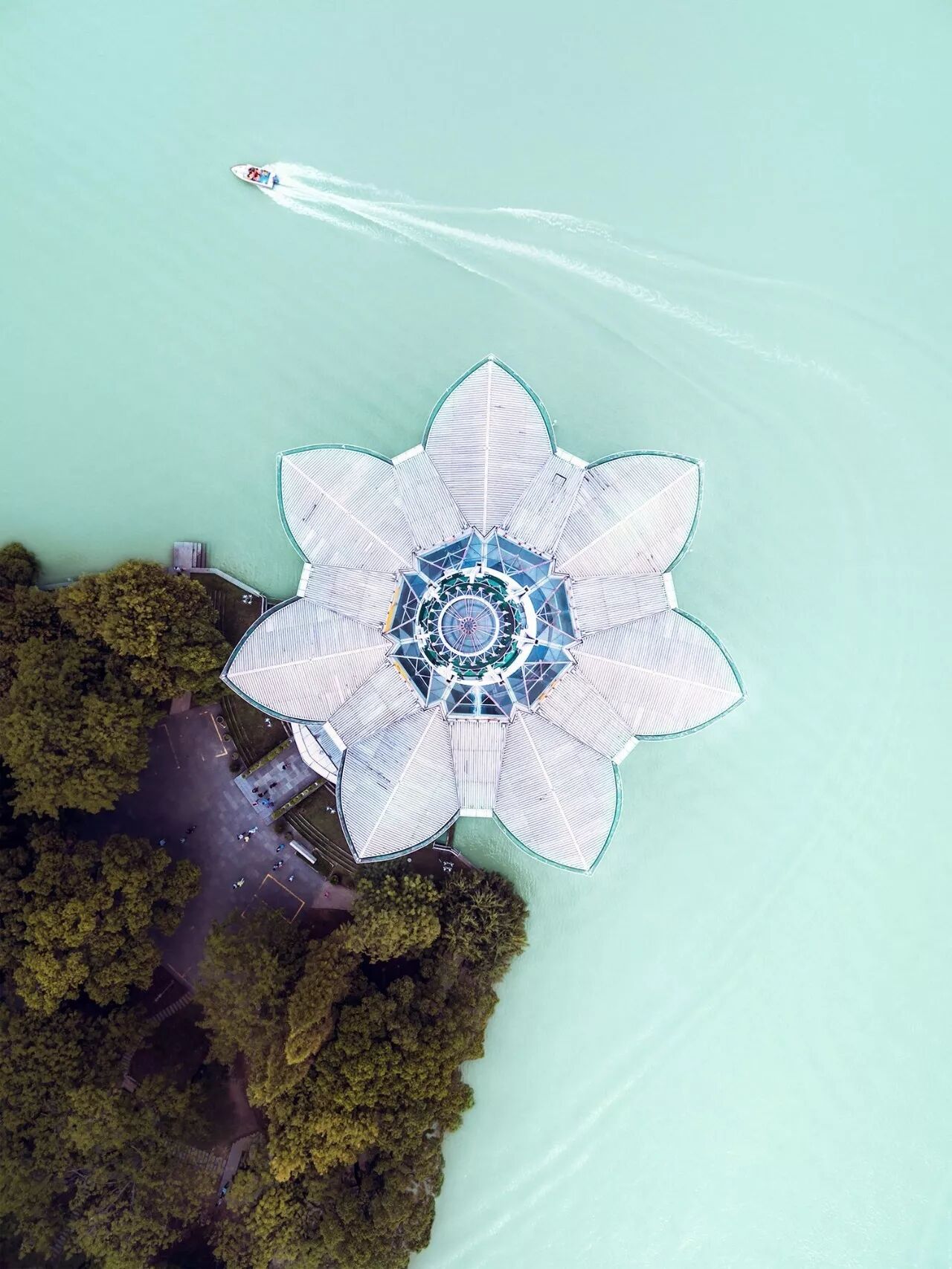 (第1张为内蒙古扎兰屯市柴河镇月亮天池,摄影师@钟永君;第2张为泸沽湖,因水体透明度极高,以上帝视角观看,水下植物纤毫毕露,摄影师@文军)
