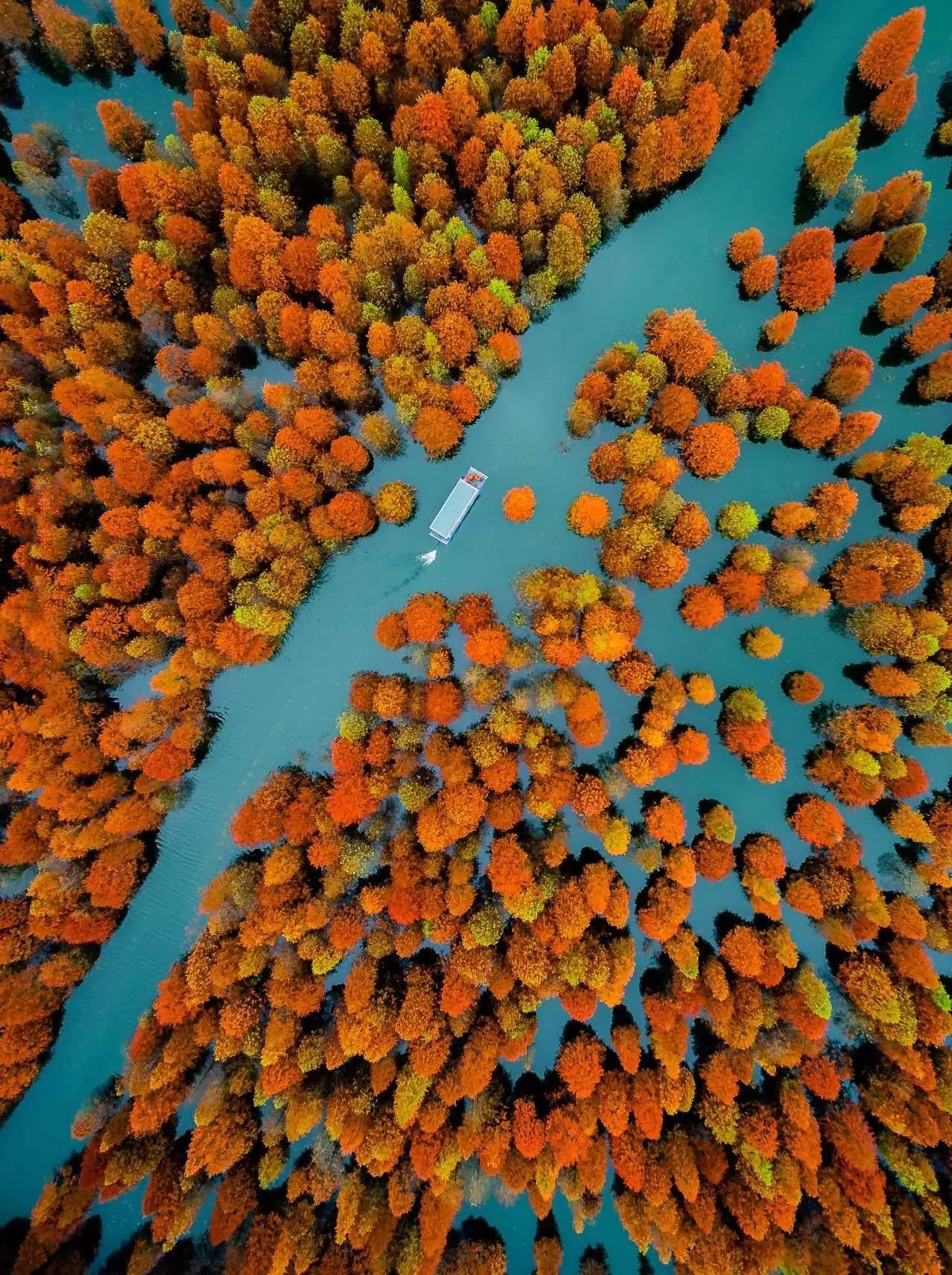 (末次冰期来临时,北美与欧洲许多地方都被冰原覆盖,生存在中国的物种则逃过一劫,成为中国物种资源丰富的另一个原因;下图为安徽青龙湾的落羽杉,此处为引进物种,摄影师@蒋凌翔)