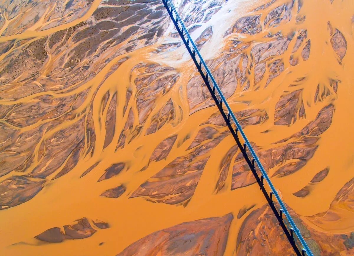 (长江的上游沱沱河,青藏铁路大桥像一把梳子,轻轻划过母亲的发丝;摄影师@姜曦)