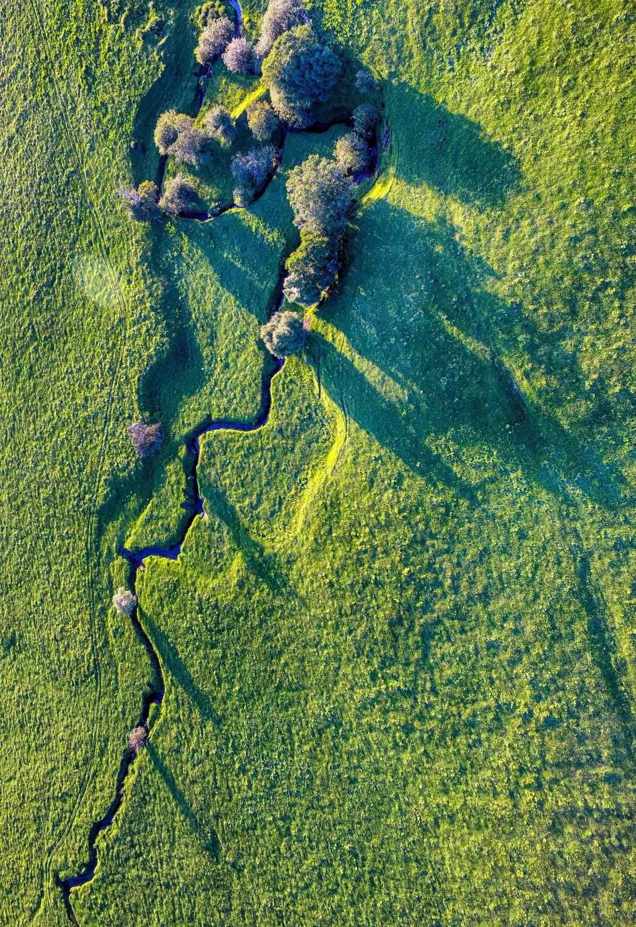 (新疆独山子大峡谷,流水冲刷出的无数沟壑,从空中俯瞰居然构成了一颗“大树”;摄影师@刀哥)
