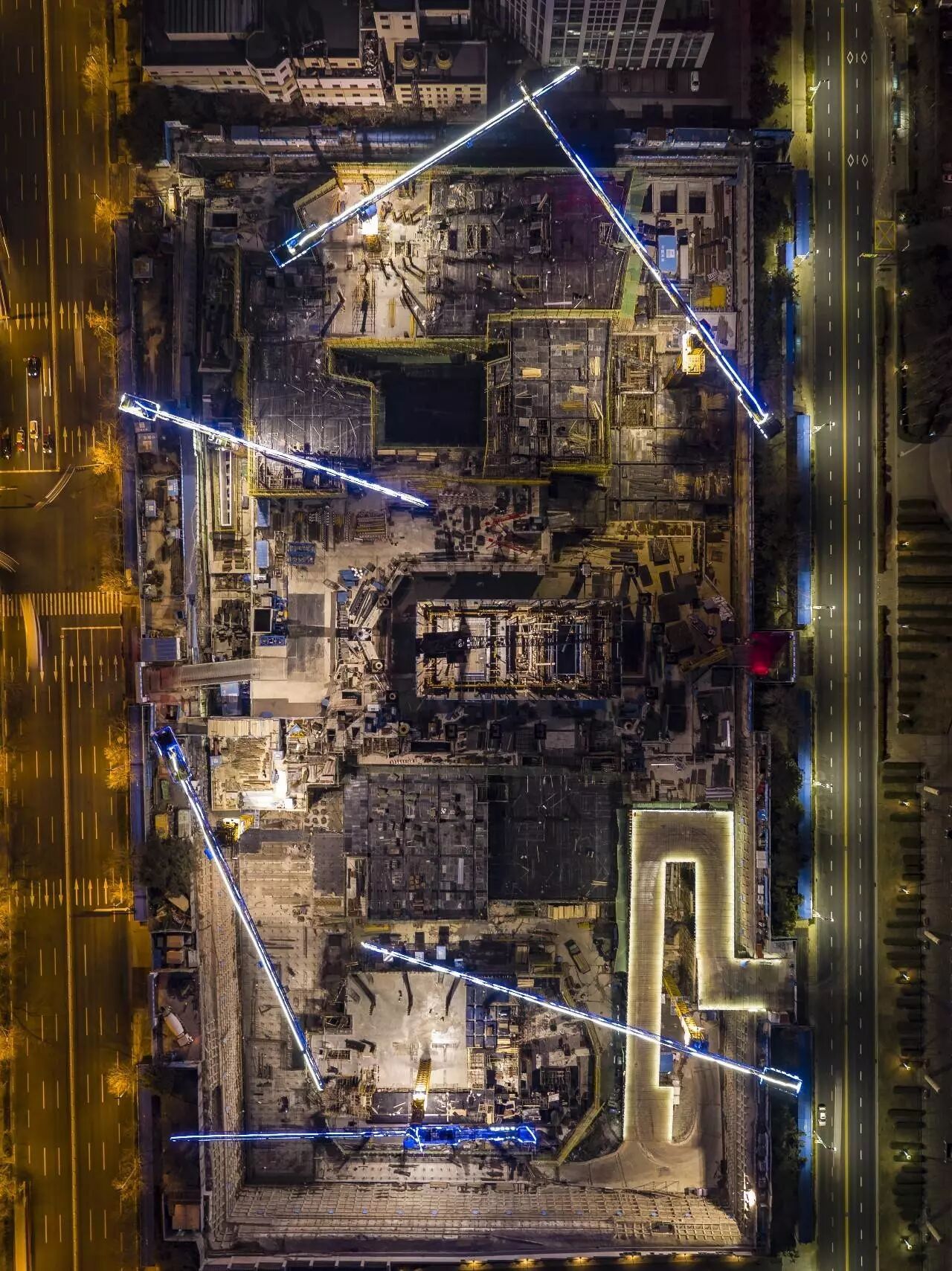 (在建的青岛海天中心,白光部分为塔吊,摄影师@孟涛)
