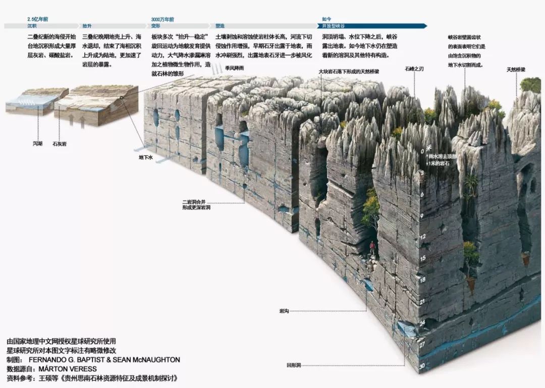 (石林形成过程示意图,可点击放大查看,制图@National Geographic,由国家地理中文网授权星球研究所使用)