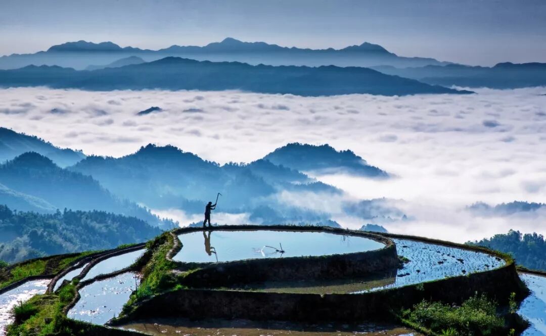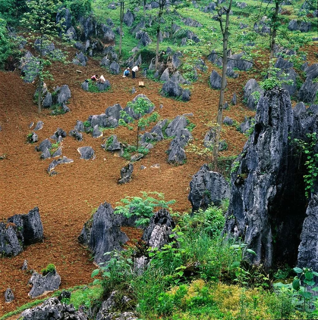 (山阳县海螺村喀斯特地貌中耕作的农民,摄影师@李杰)