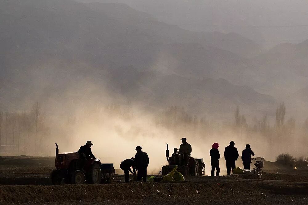 (甘肃农村村民们在飞扬的尘土中播种,摄影师@刘忠文)