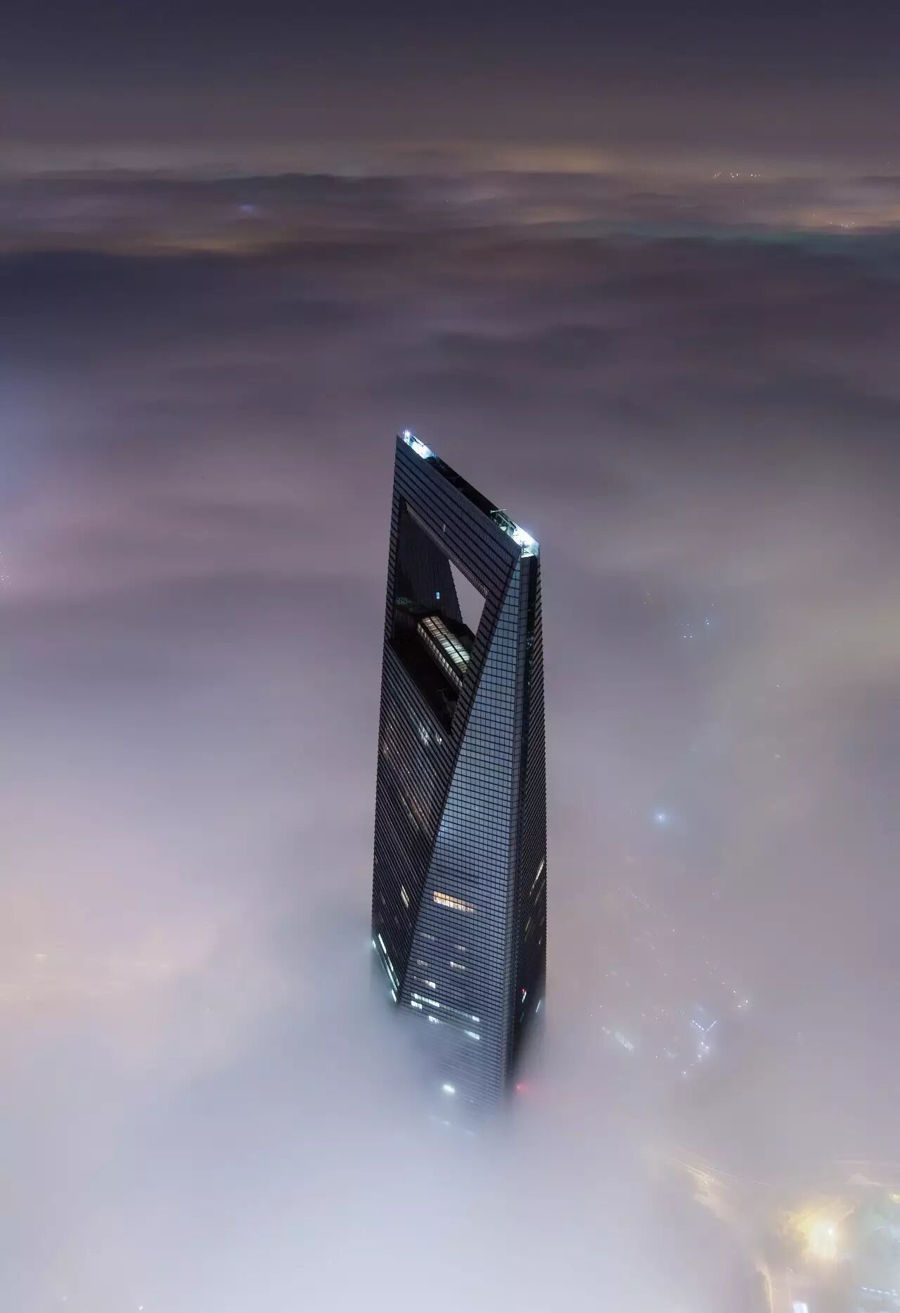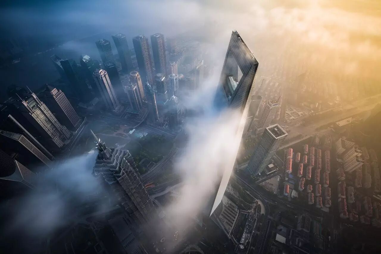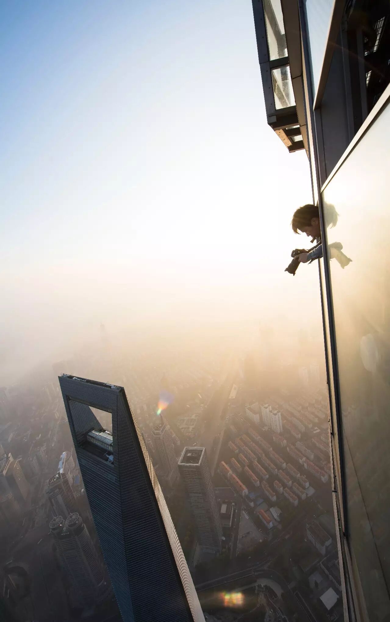 (正在拍摄的摄影师位于上海中心121层,下方为环球金融中心;摄影师@500PX严磊)