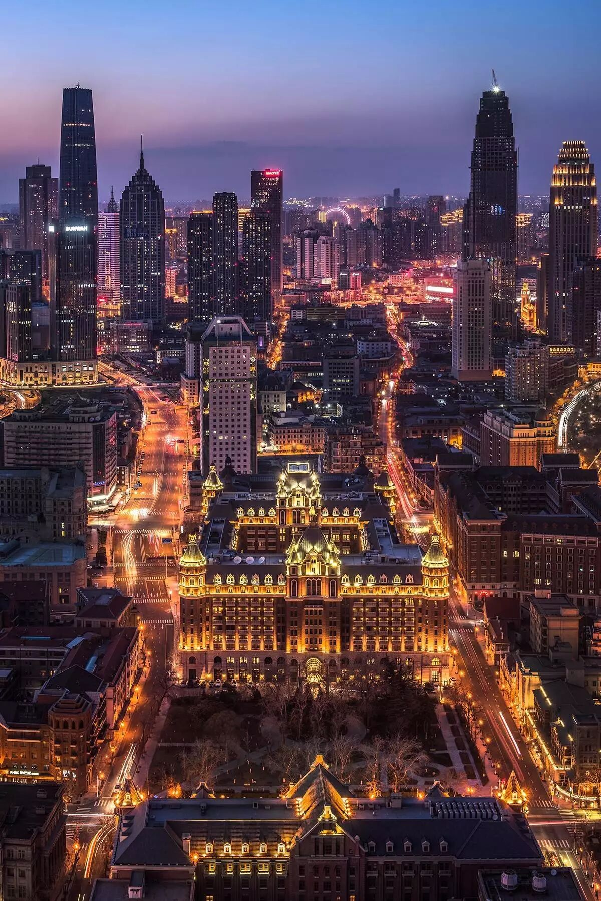 (点击后观看更清晰;拍摄于中山路发达大厦楼顶,中间建筑为德国胶澳总督府旧址,山上为电视塔;摄影师@IVIEZX)