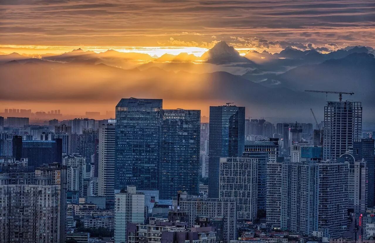 (拍摄于天紫界大厦,对面为幺妹峰;关于成都观看雪山的详细介绍,请点击此处;摄影师@唐侨)