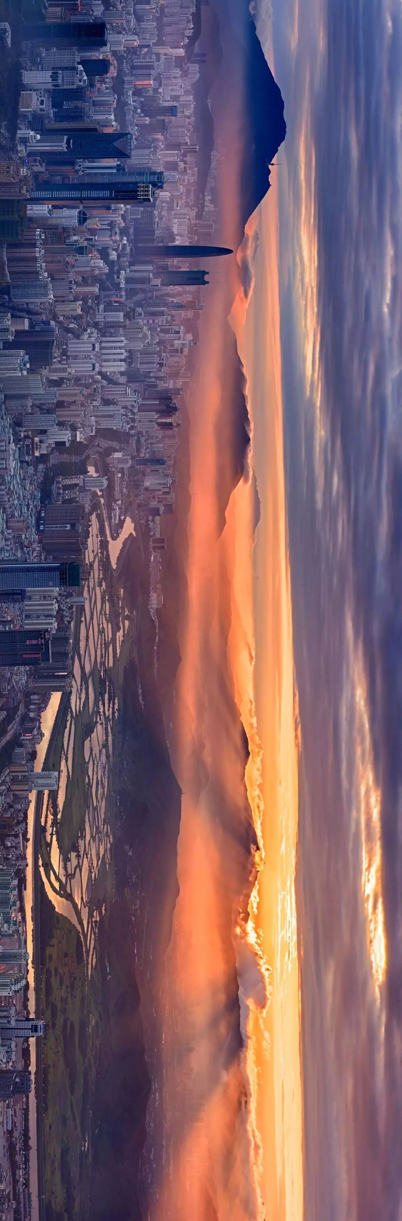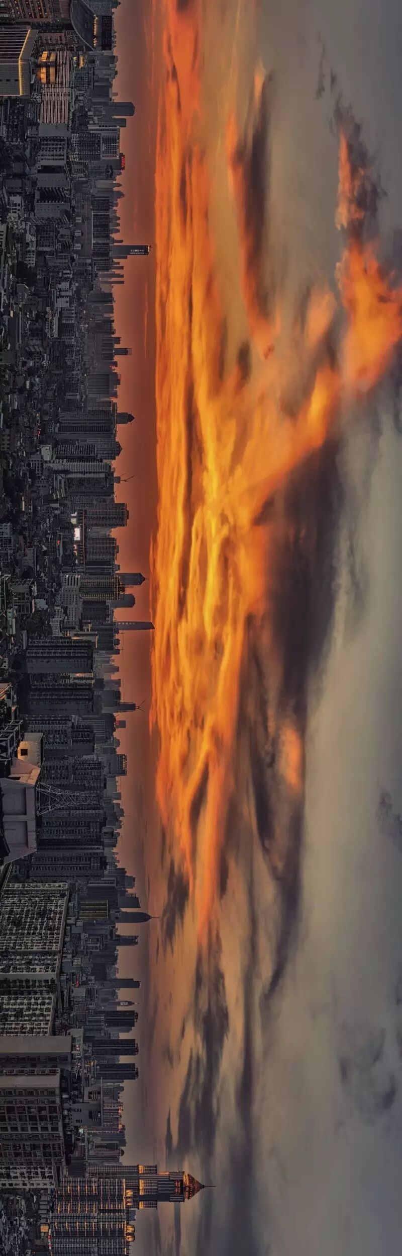 (点击后横屏观看更清晰;汉口中心城区云如魔焰,2017年7月拍摄于汉口长江大厦;摄影师@凝固之眼)