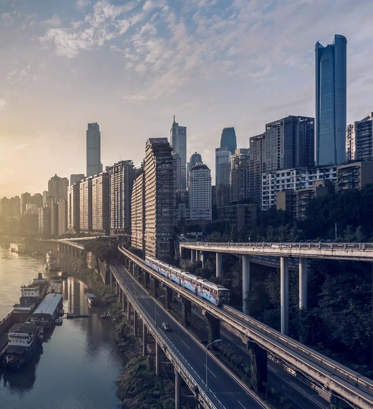 (7点左右在天府塔拍摄的成都;摄影师@陈丹子)
