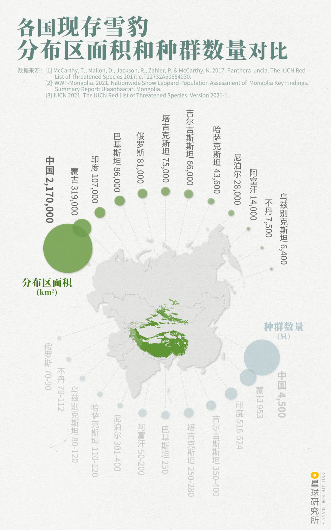 (如今,中国已有许多雪豹保护组织在为保护这种美丽的大猫奔走努力,摄影师@沈志君,制图@杨宁/星球研究所)