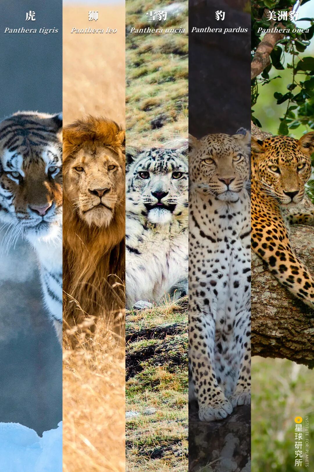 (豹属“五虎将”,图片来源@谢建国/自然影像中国、李佳、视觉中国、贾纪谦、视觉中国)