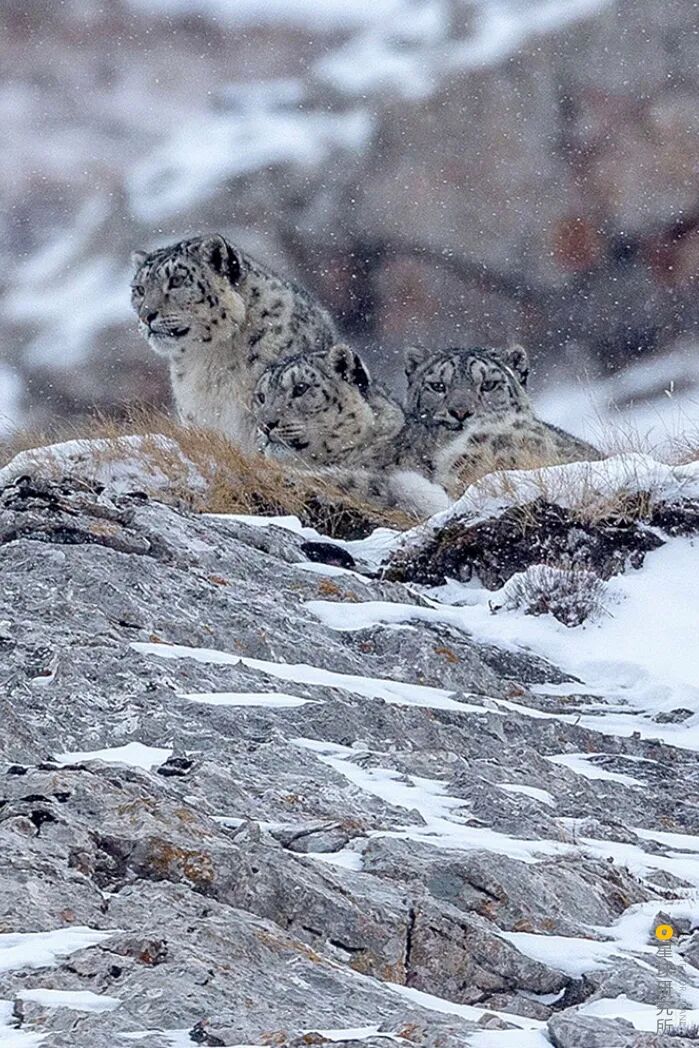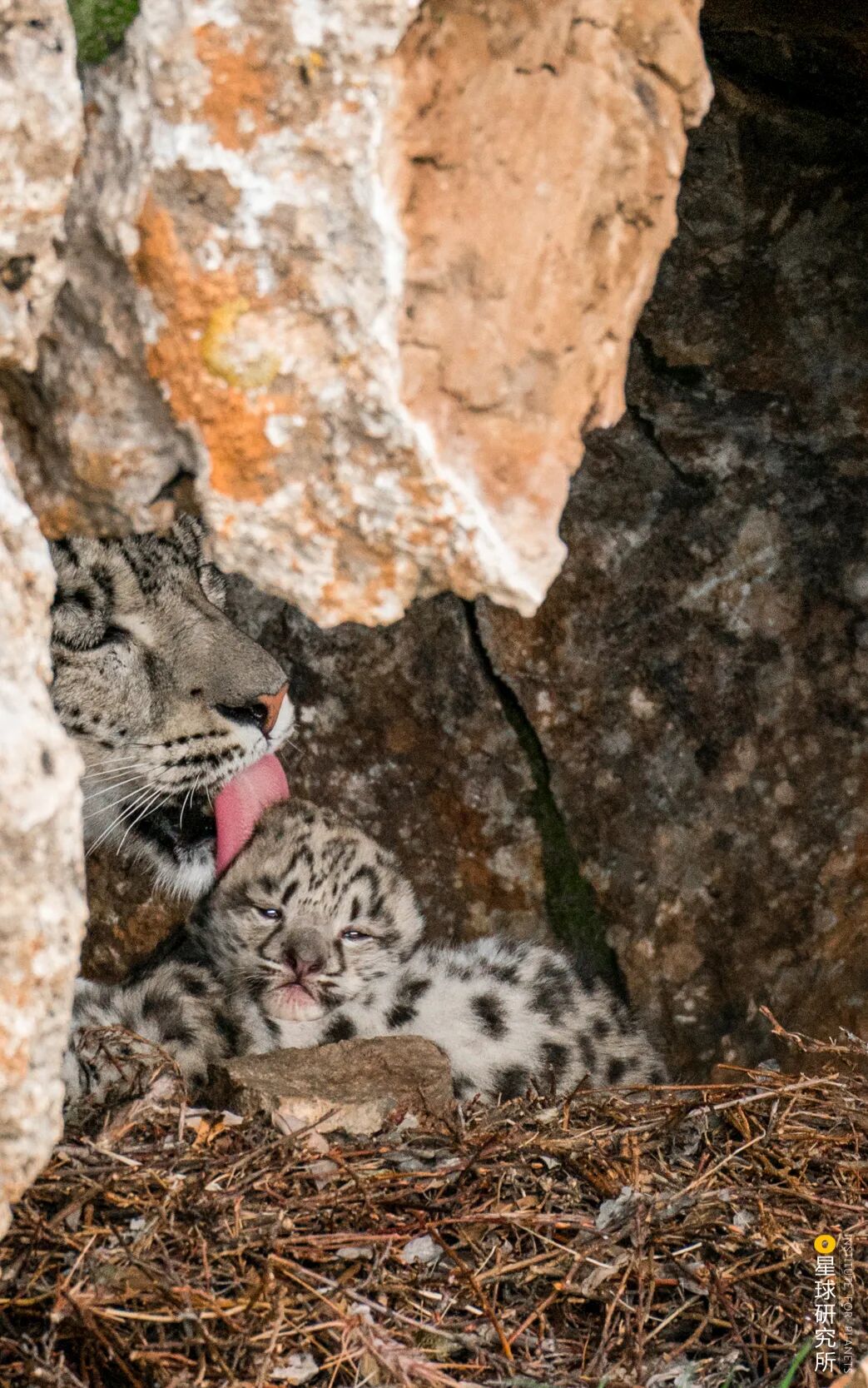(在母亲悉心呵护下的雪豹宝宝,青海昂赛,摄影师@奚志农/野性中国)