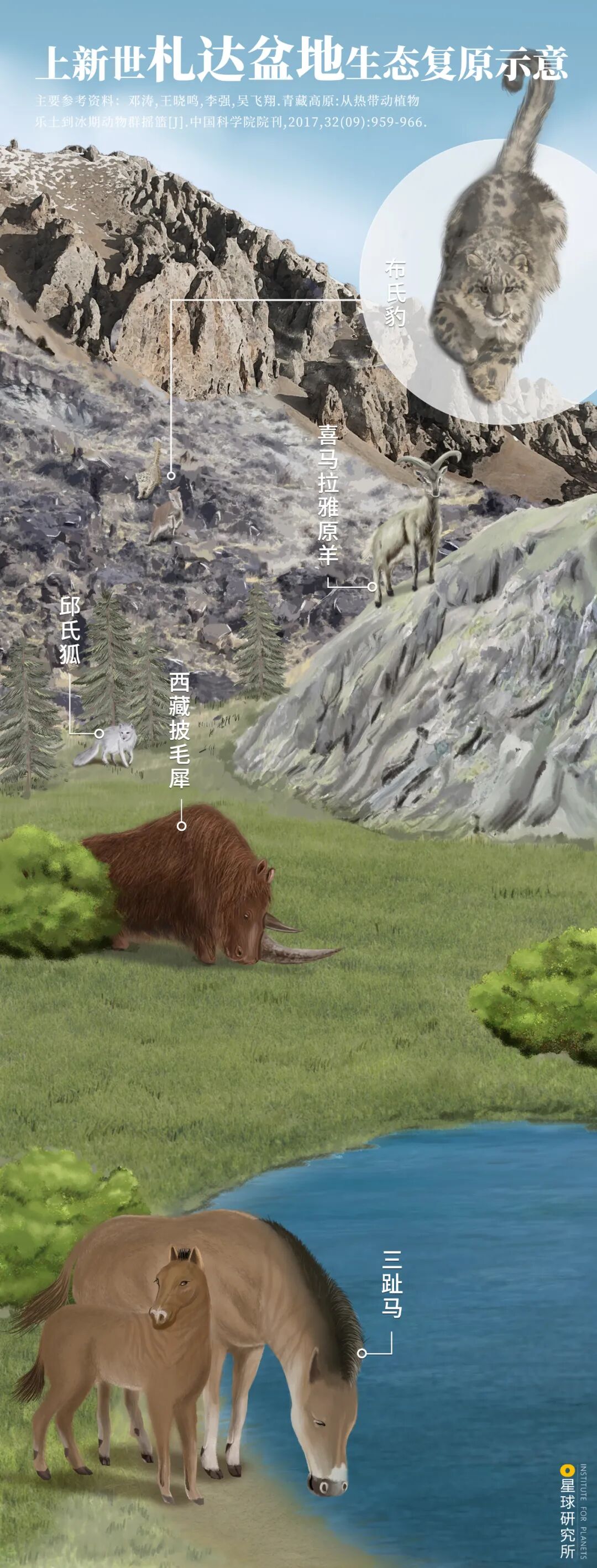 (距今四、五百万年前的上新世札达盆地生态景观复原示意图,制图@杨宁/星球研究所)