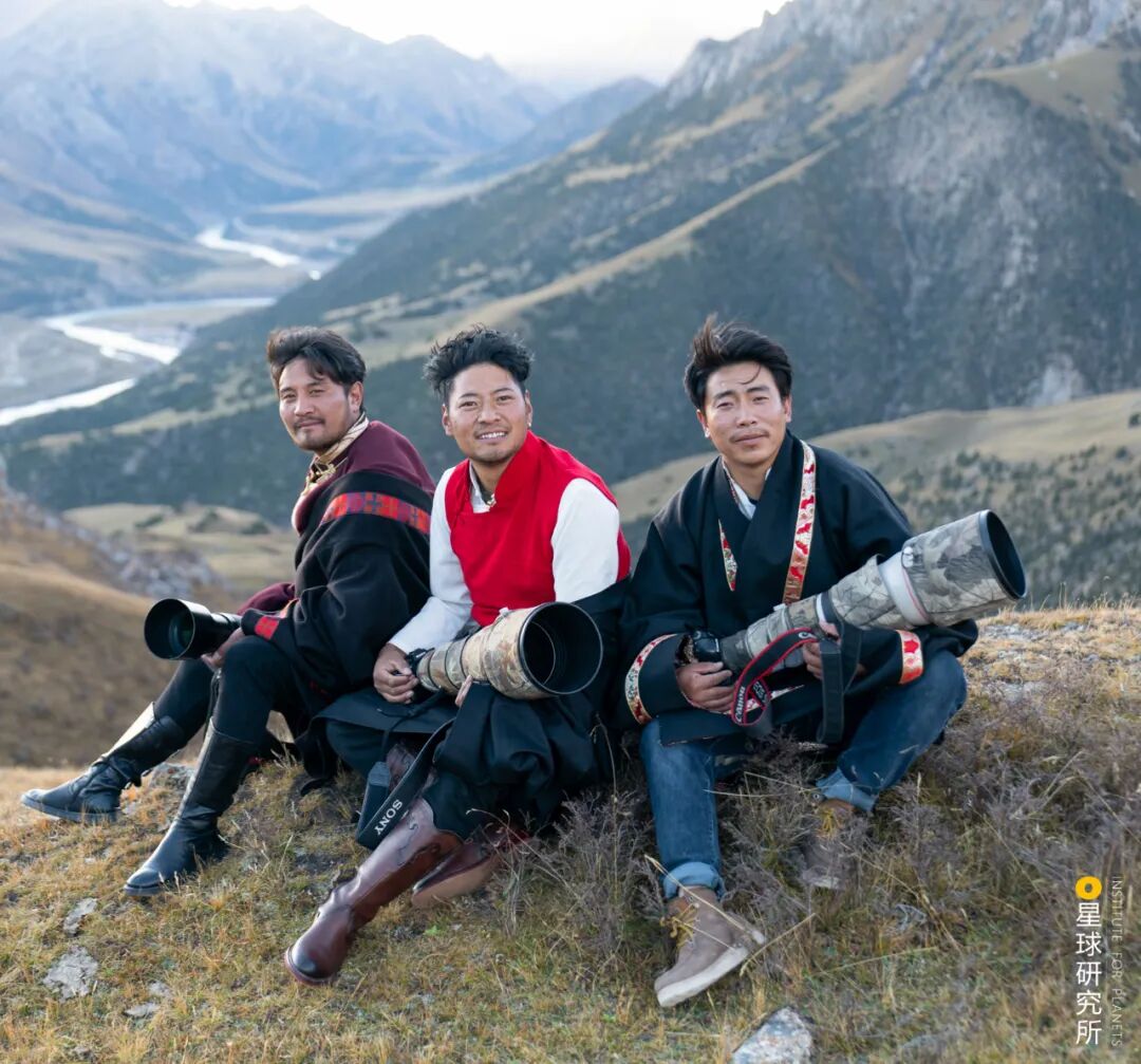 (一线的牧民被培养成野生动物摄影师,用影像感染公众,保护动物,从左到右依次是达杰、更求曲朋、次丁,前文中就有他们的作品,摄影师@柯炫晖/野性中国)