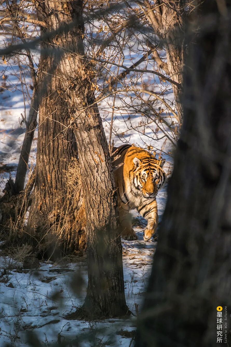 (在东北虎保护基地的林子里的东北虎,东北虎国家公园,摄影师@雷雨)