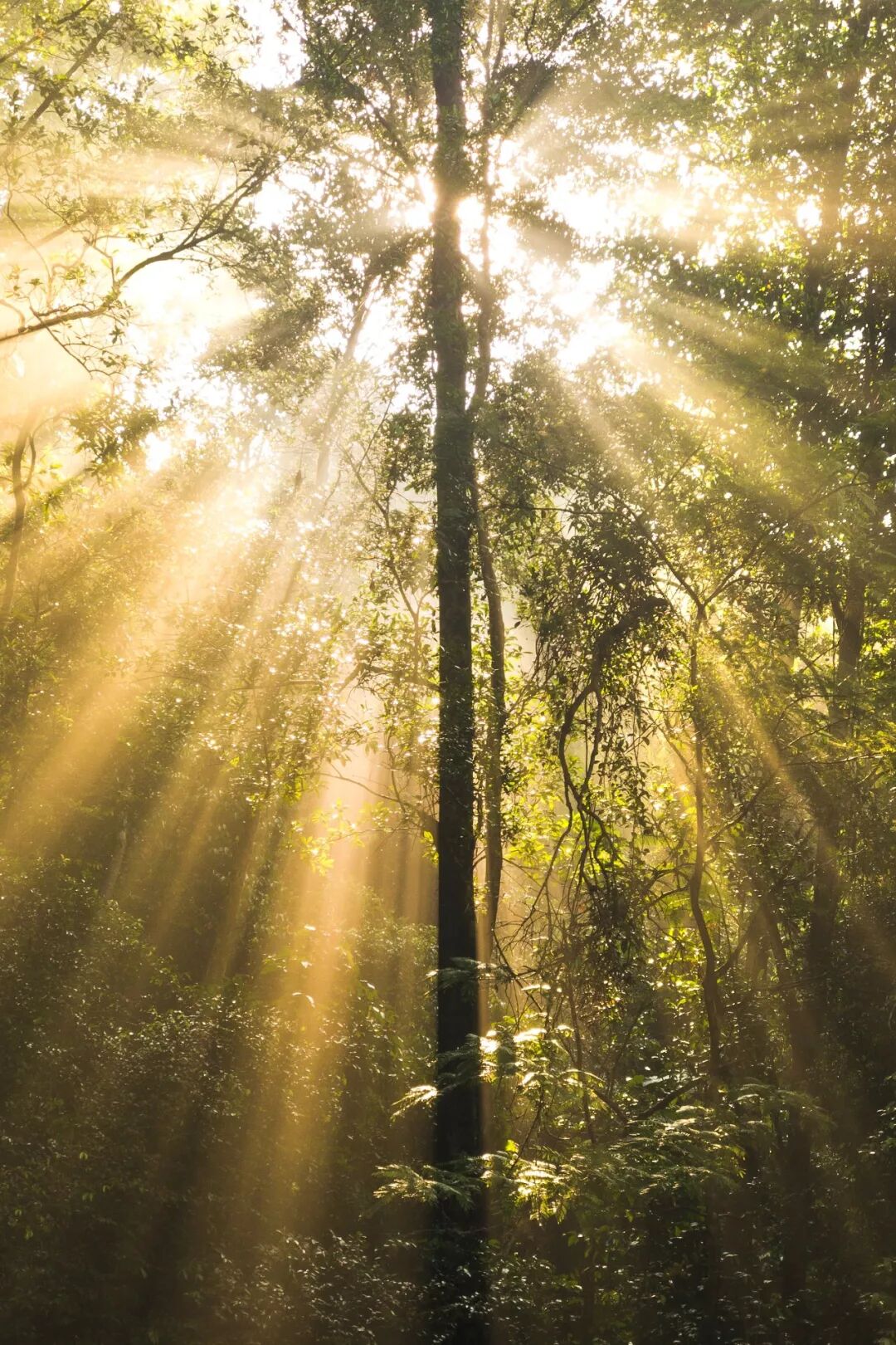 (森林一般是指在一较大面积的区域内,以树木为主体构成的植物群落及生态系统,各个国家、地区、组织对于森林的详细定义不一而足,本文中的森林主要指木本植物组成的群落,也包括一些较为高大的草本植物群落,属于较为广义的“森林”概念;下图为森林中的光影,摄影师@Jerry Wang)