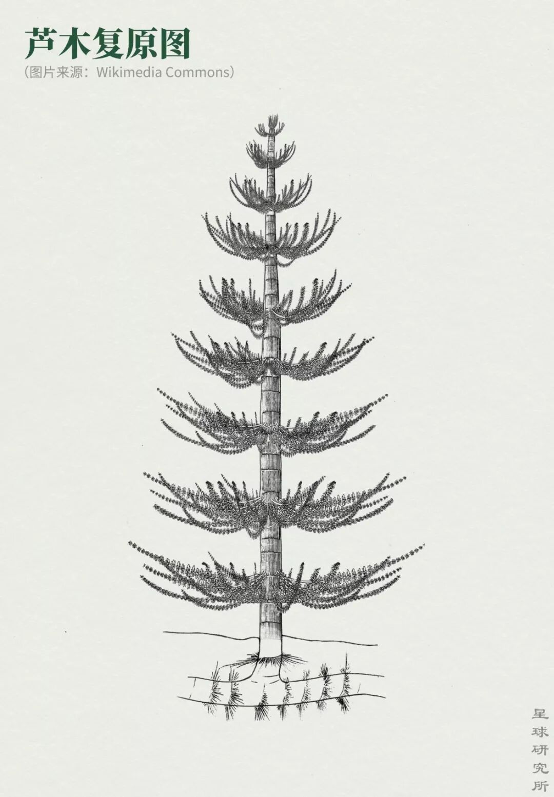 (一种节蕨植物:芦木的复原图,图片来源@Wikimedia Commons,制图@郑伯容/星球研究所)