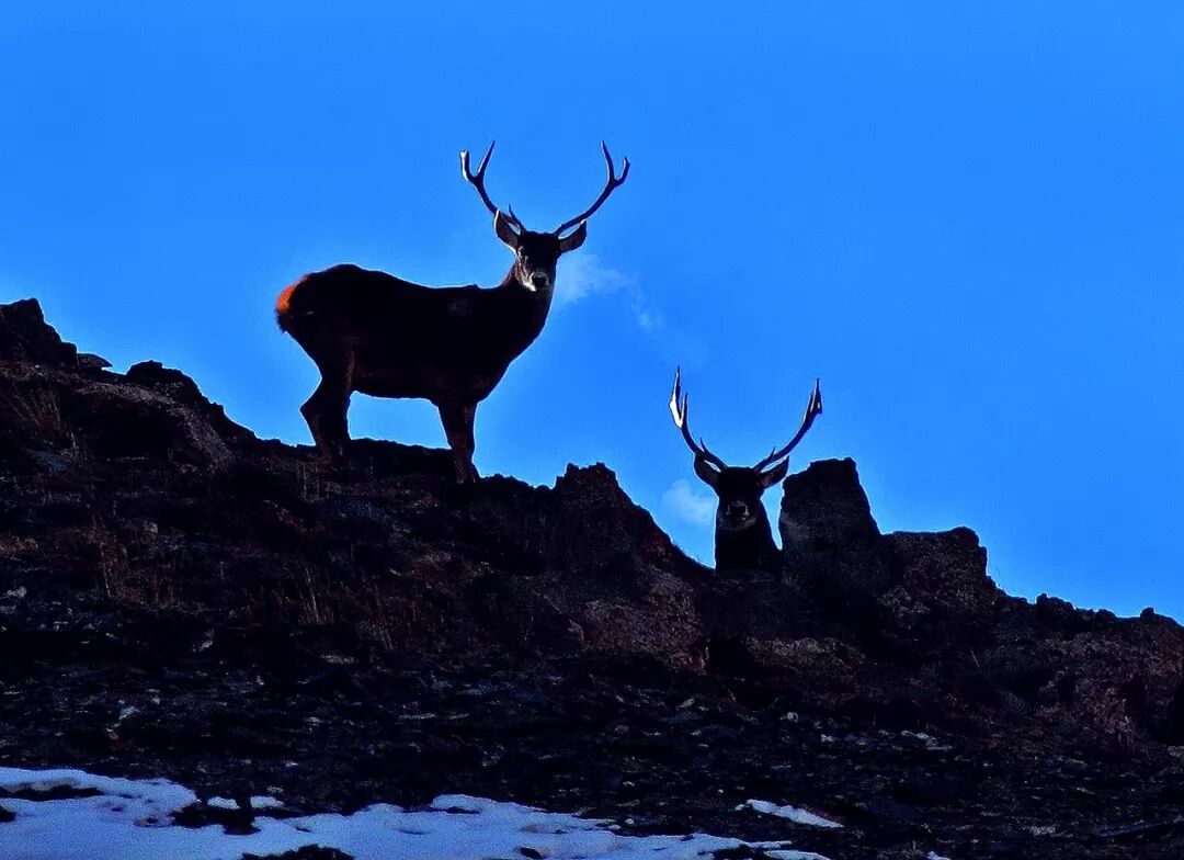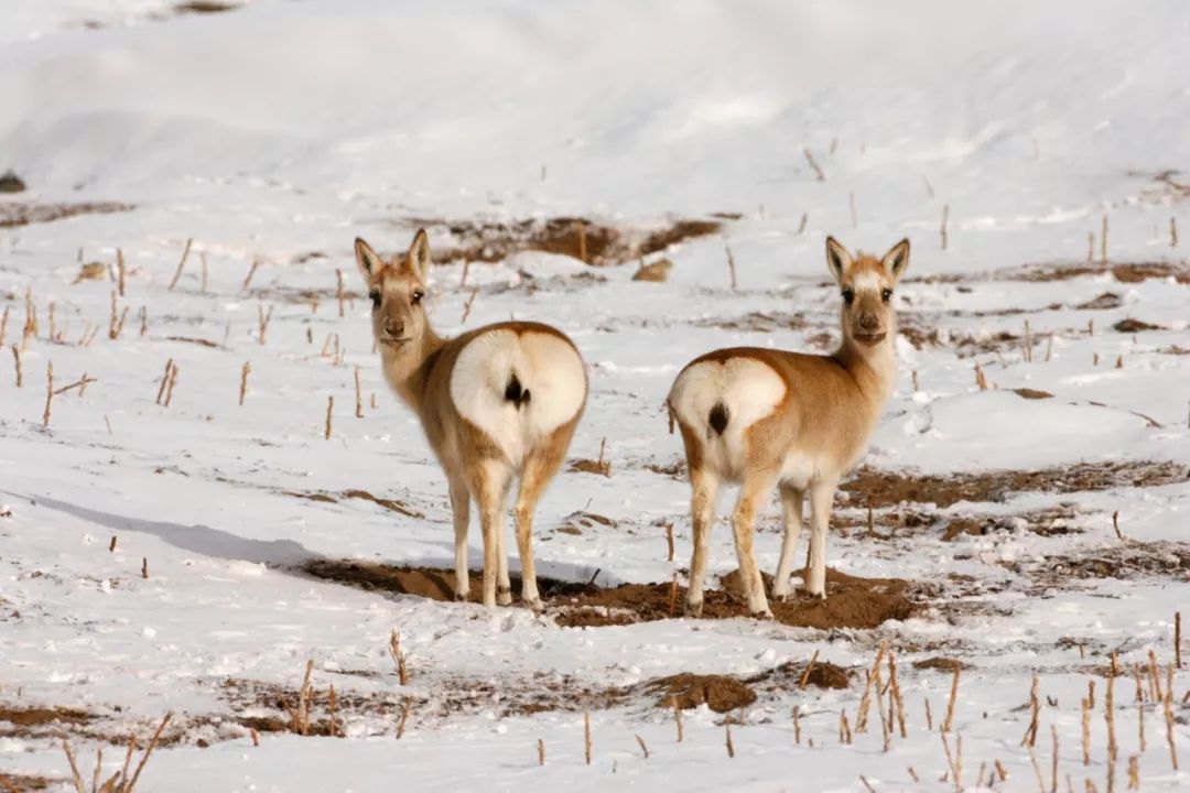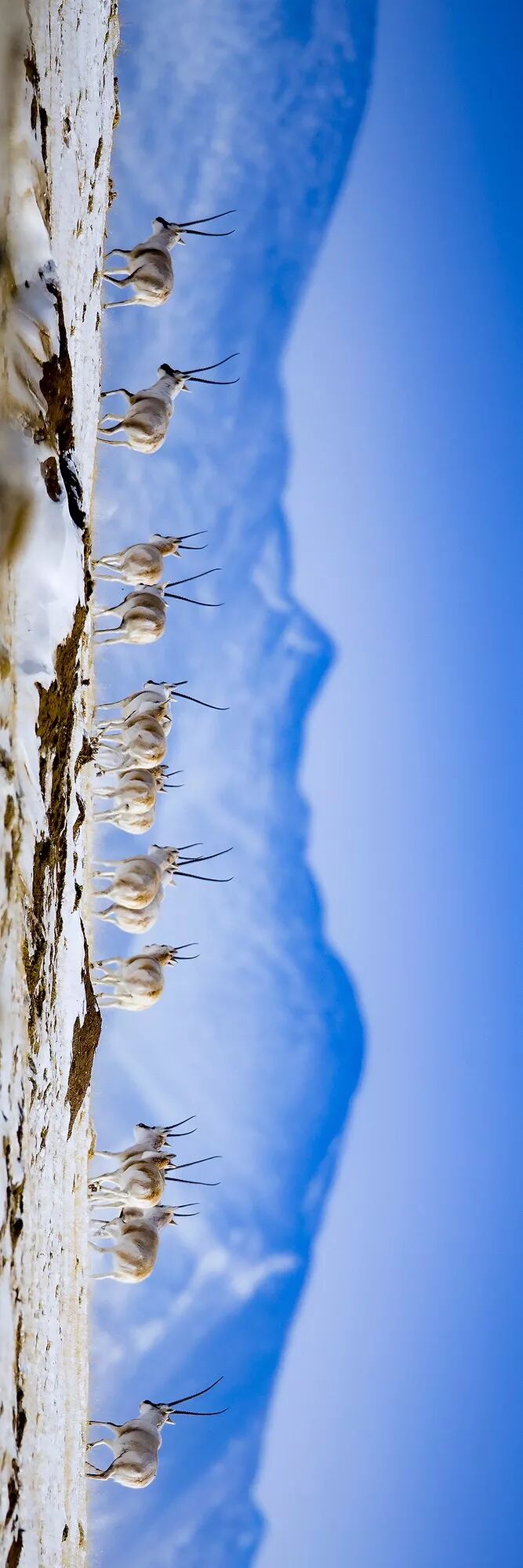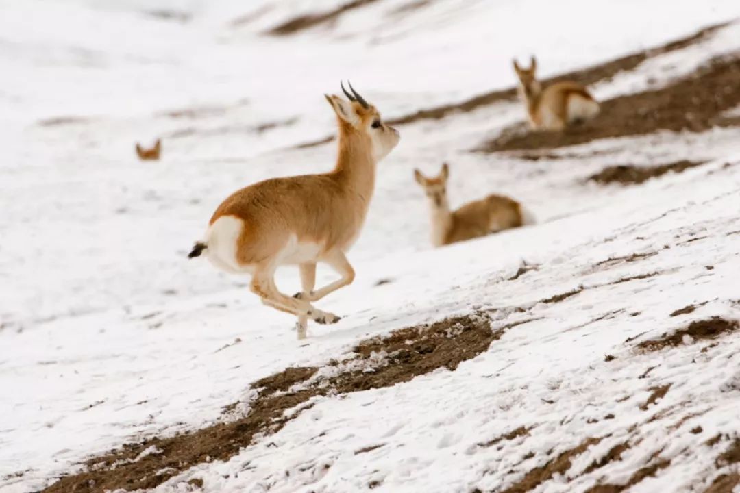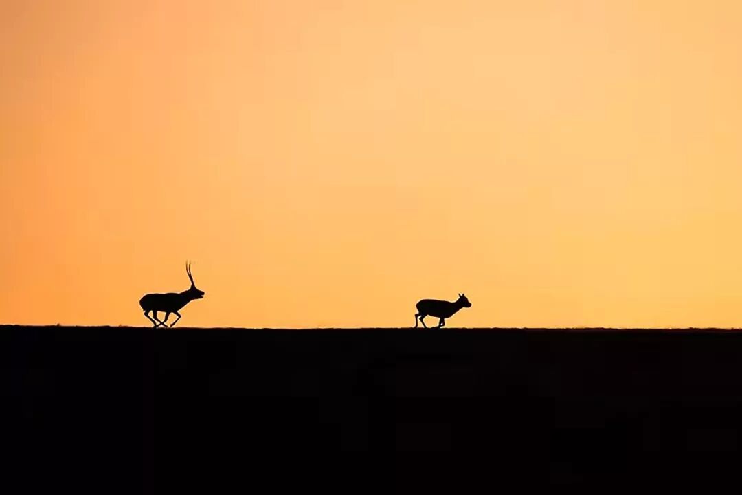 (求偶的藏羚羊,前为雌性,后为雄性,摄影师@顾莹)