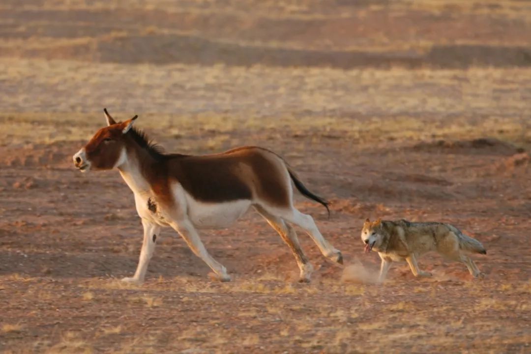 (这个动图片断实际上是三只狼的合力,另外两只负责将猎物驱赶到画面中这只狼的埋伏点,摄影师@顾莹)