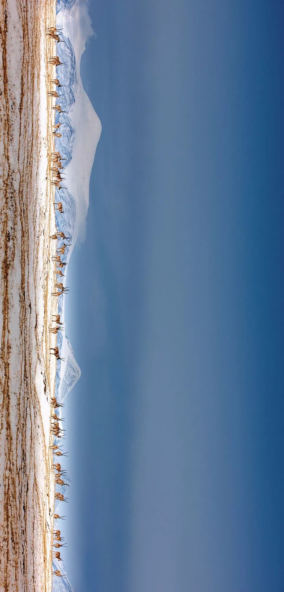 (航拍藏羚羊穿越青藏铁路,摄影师@顾莹)