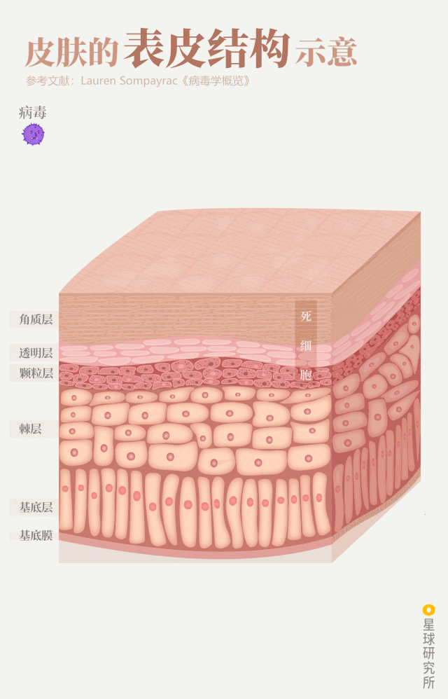 (手掌及脚掌皮肤的表皮结构示意,其他部位的皮肤没有透明层,制图@赵榜/星球研究所)