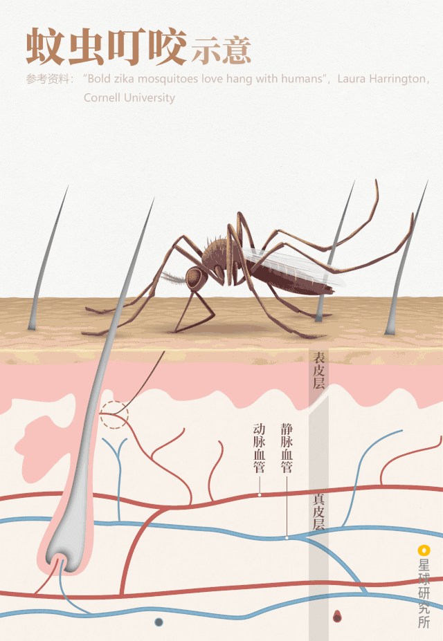 (蚊虫叮咬示意,制图@郑伯容/星球研究所)