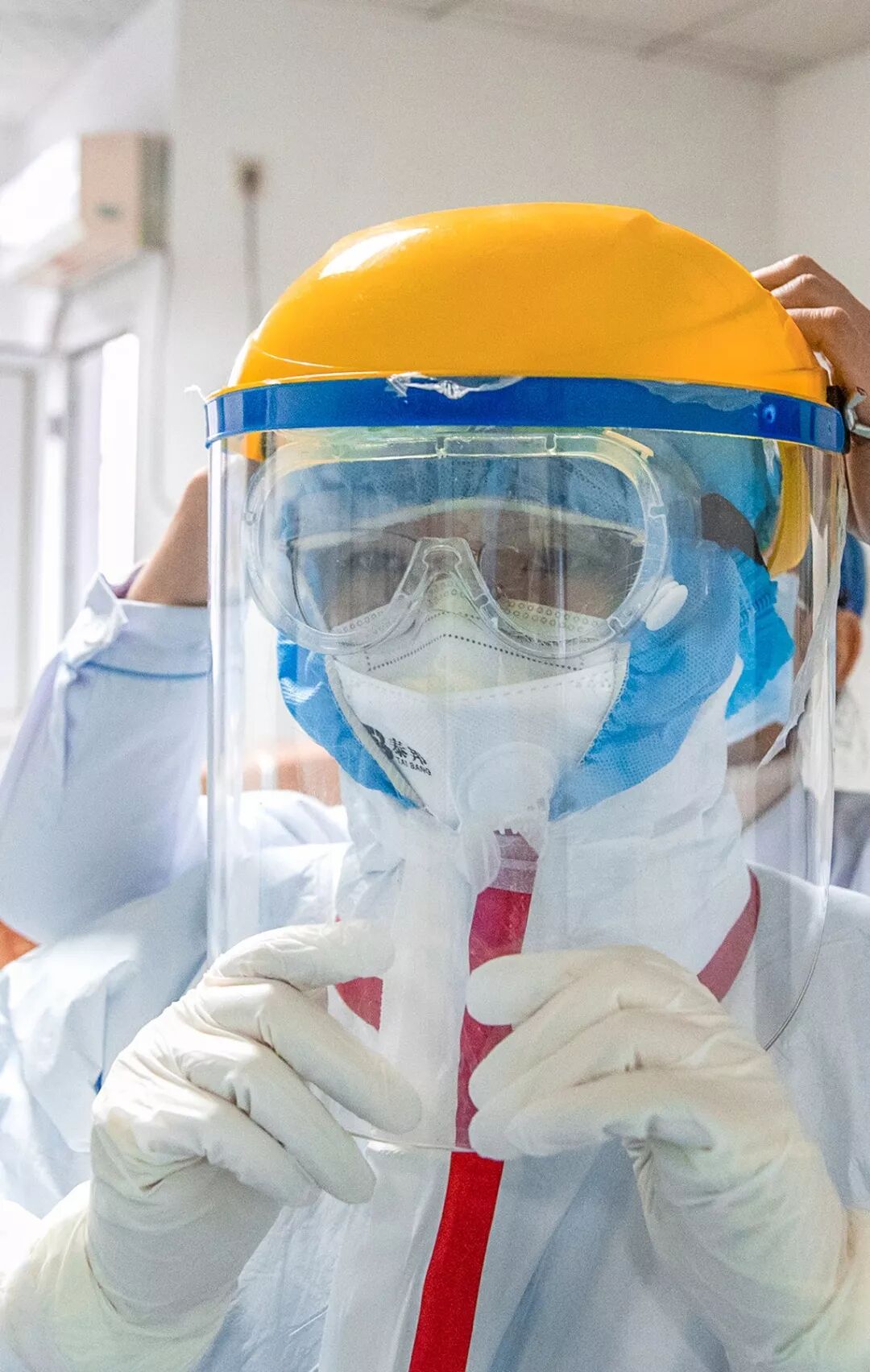 (这也是为什么医护人员需要佩戴护目镜甚至面罩的原因,下图拍摄于湖北黄石市,摄影师@何戈)
