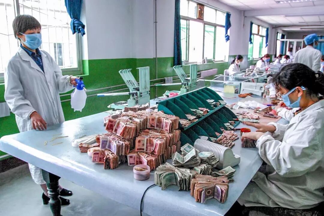 (2003年4月28日SARS疫情期间,西安公交公司给收回的钱消毒,摄影师@拾城 摄近求远)
