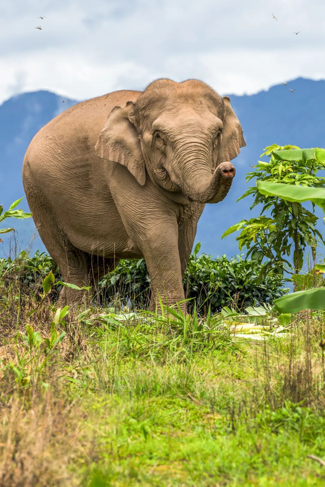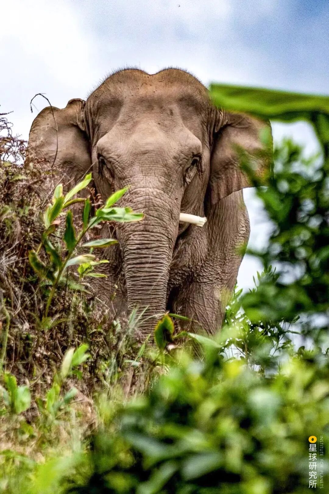 (一头出现在云南普洱某处茶园的成年亚洲象,巨大的体型能给人强烈压迫感,摄影师@何新闻)