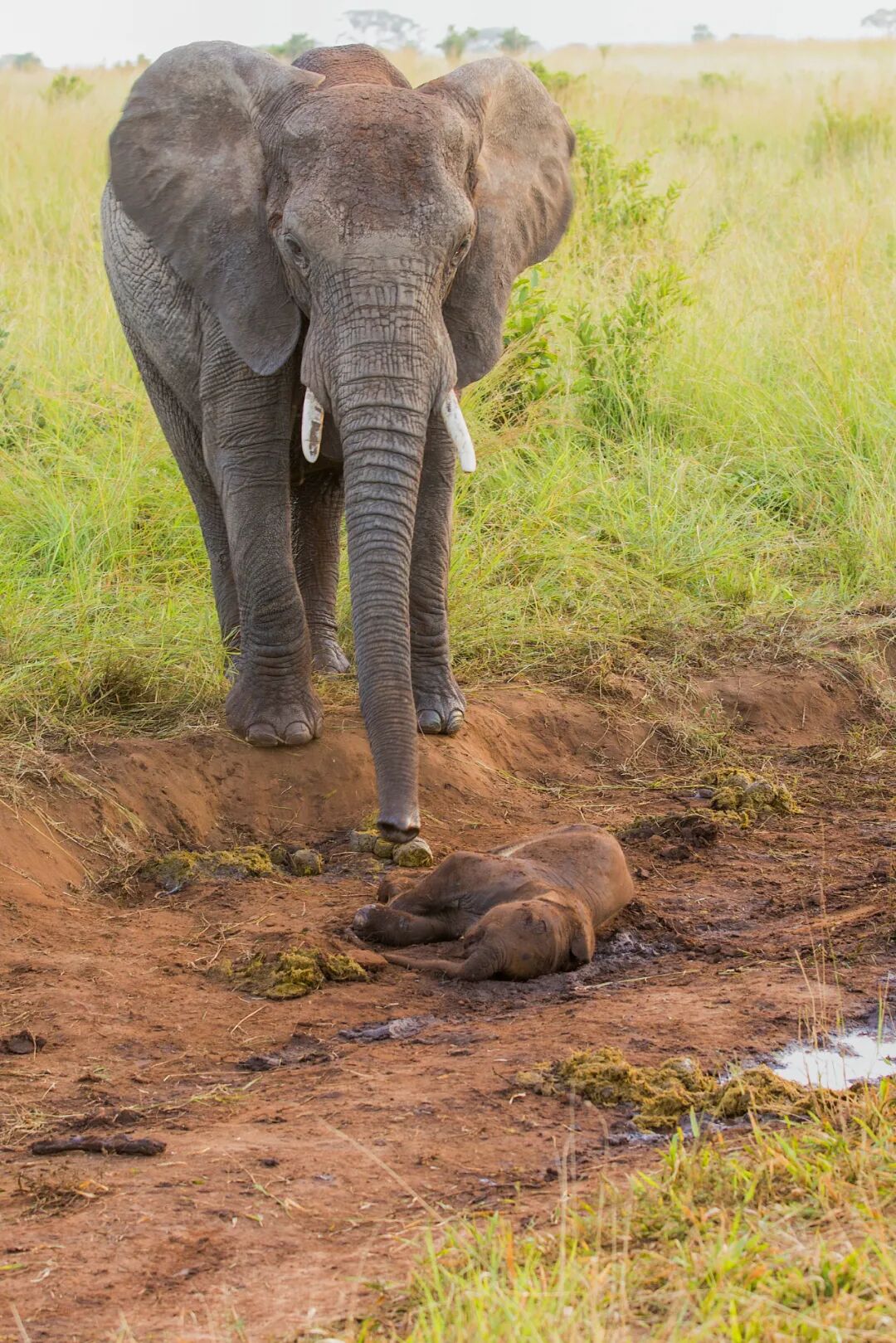 (图为在家人的巨大身躯庇护下的新生非洲草原象,刚出生的小象体重已经接近100千克,已经碾压星所的所有小伙伴了,来源@视觉中国)