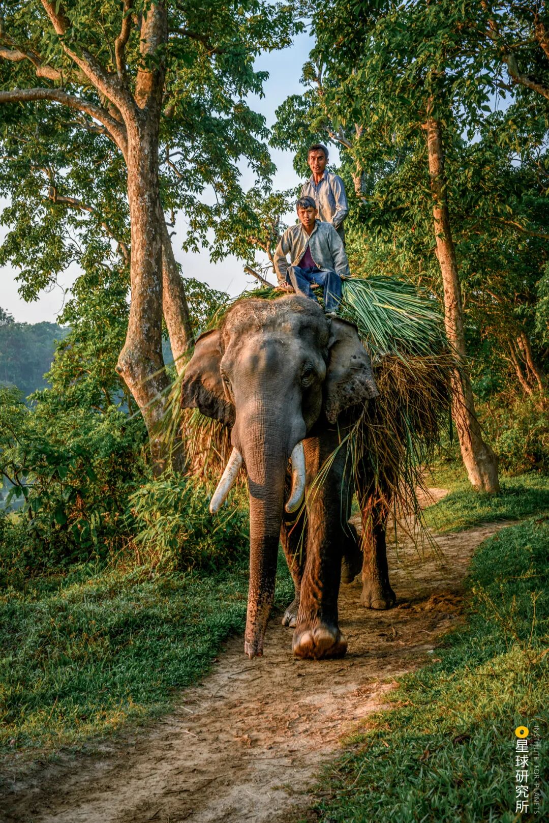 (尼泊尔地区仍有大量的亚洲象被用于搬运重物,摄影师@何小清)