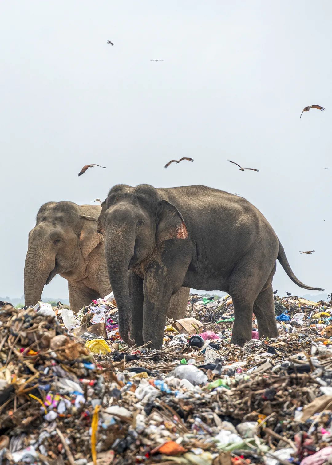 (在垃圾场觅食的野生亚洲象,作者/来源@人民视觉)