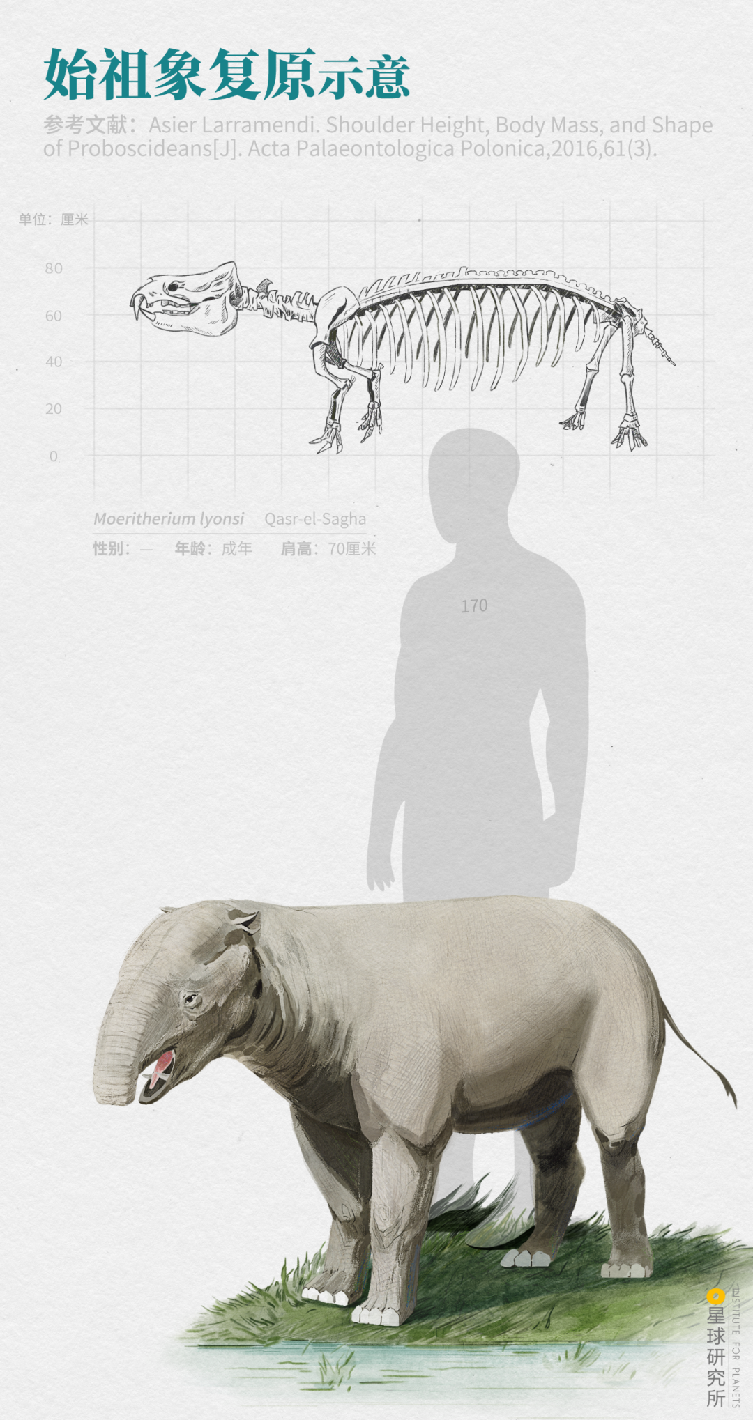 (始祖象曾被认为是最早的长鼻目动物,是大象的祖先,并因此得名,直到磷灰兽的发现,改变了这种认知,但始祖象的名字却一直保留下来,制图@汉青/星球研究所)