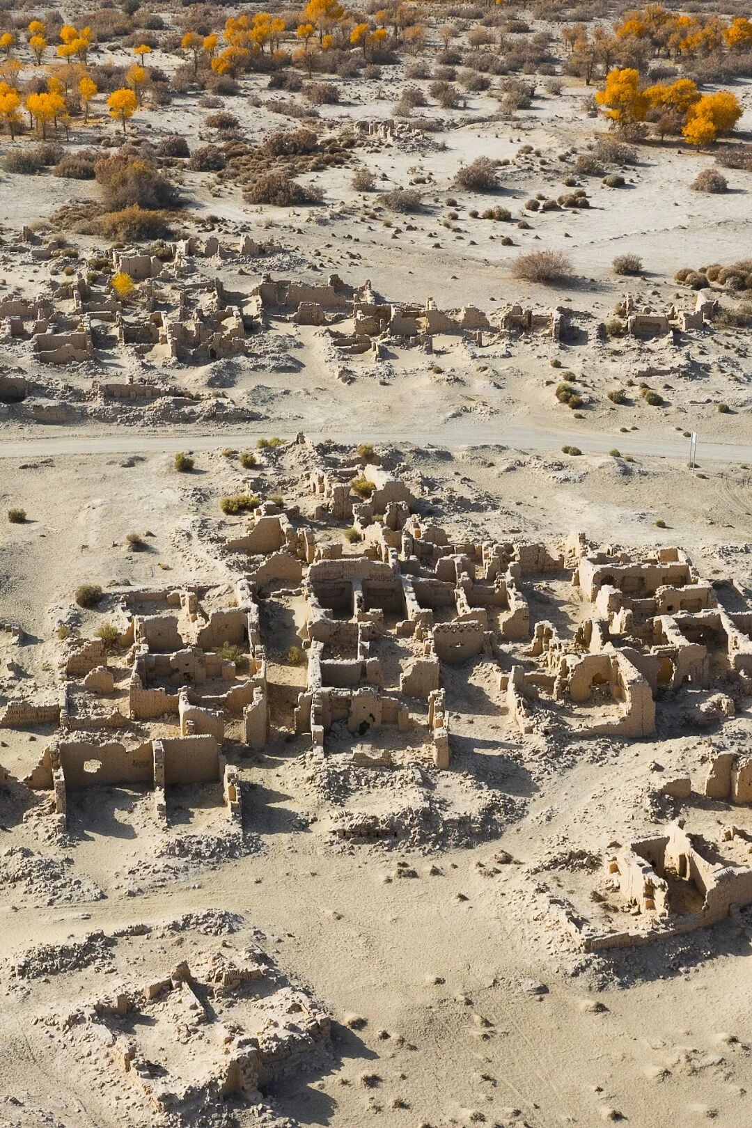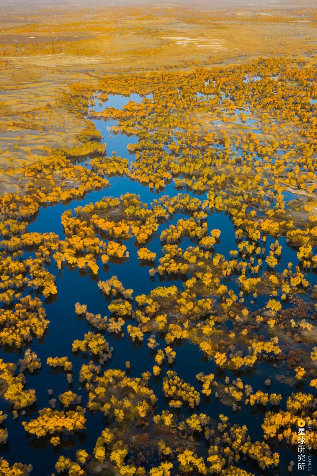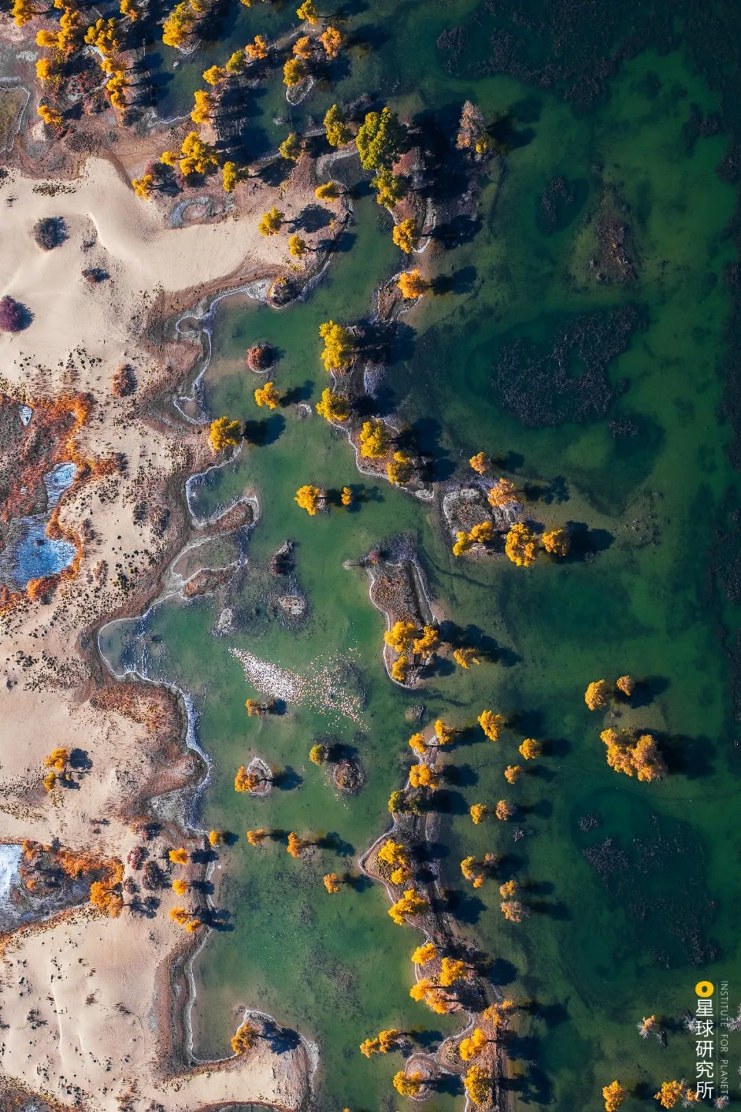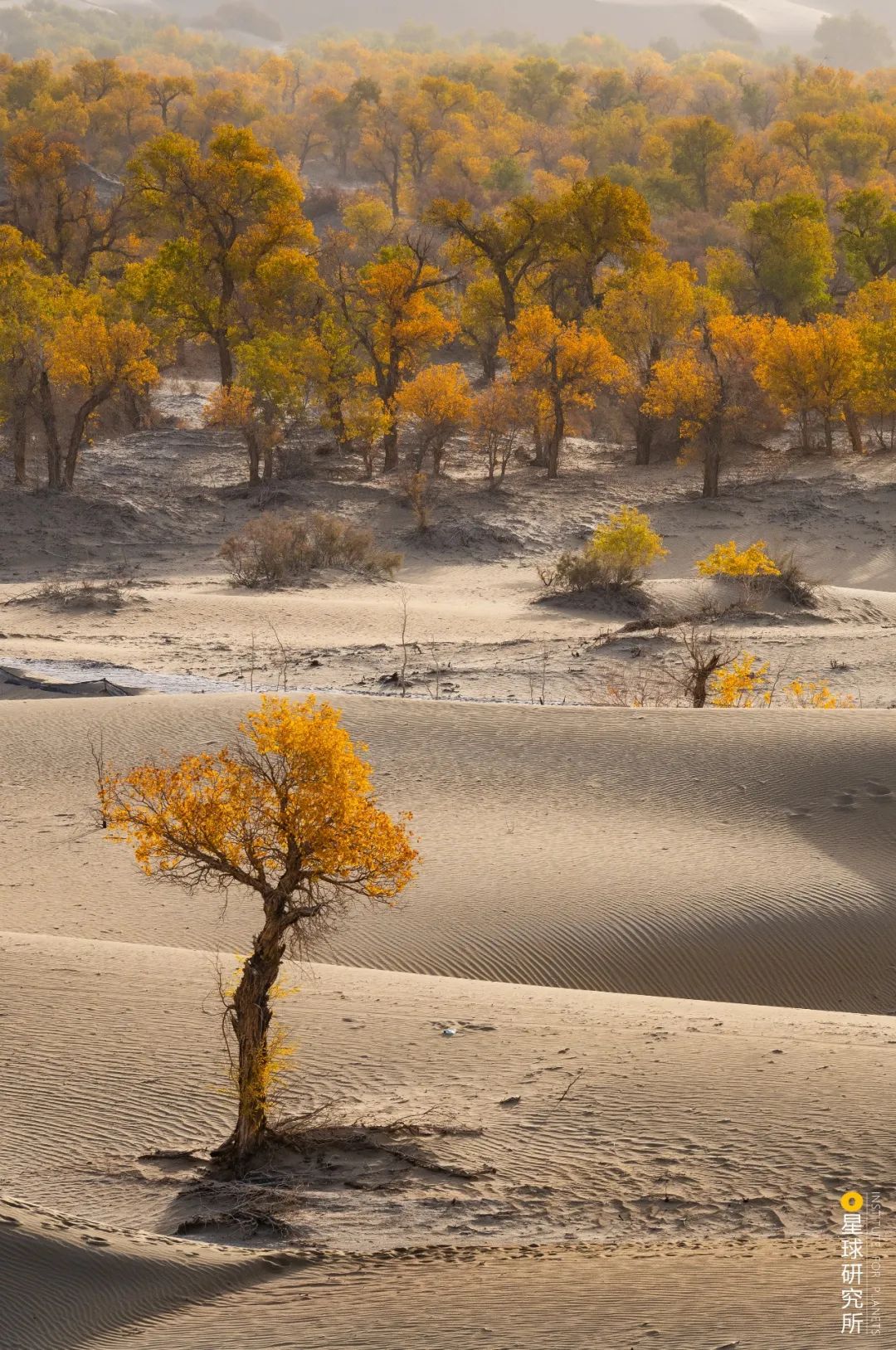 (干涸的河道与胡杨林,图片来源@视觉中国)