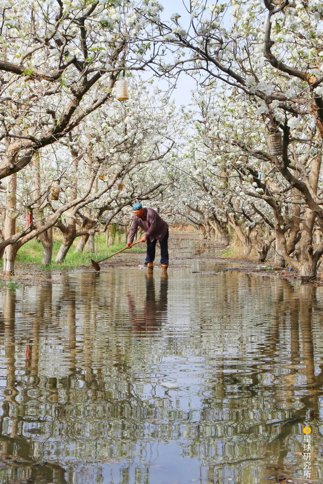 (孔雀河河水浇灌的库尔勒香梨园,摄影师@王汉冰)