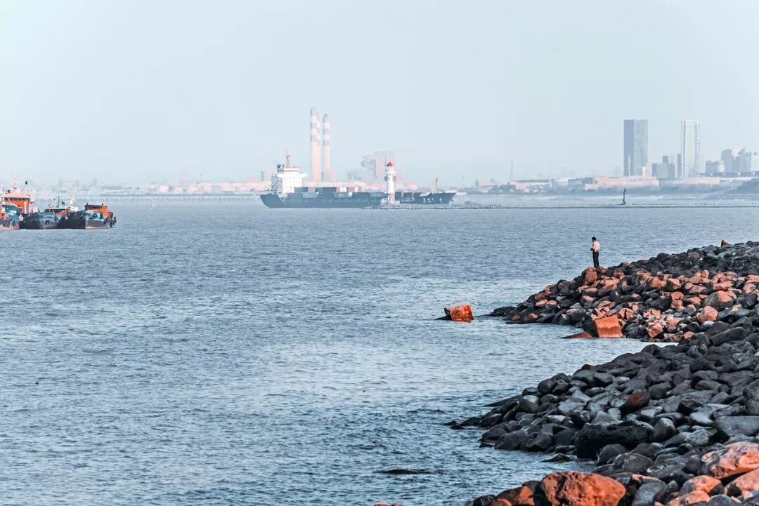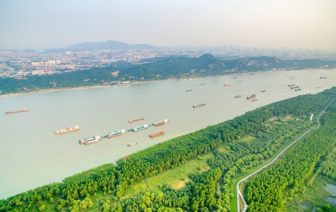 (南京段长江,自北向南视角,上方为南京城,摄影师@葛宏军)